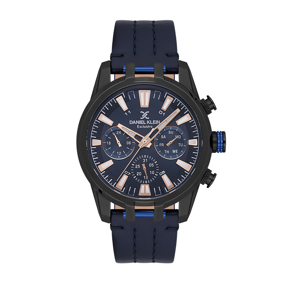 Cu un design sofisticat, ceasul este echipat cu un mecanism quartz japonez Epson Vx9je1 de inalta precizie, garantand o abatere minima de ±20 secunde pe luna. Cadranul negru, accentuat de carcasa metalica neagra si curea din piele bleumarin, confera un contrast vizual impresionant, in timp ce afisajul analogic imbogatit cu functii de afisare a datei si zilei saptamanii adauga functionalitate de necontestat.