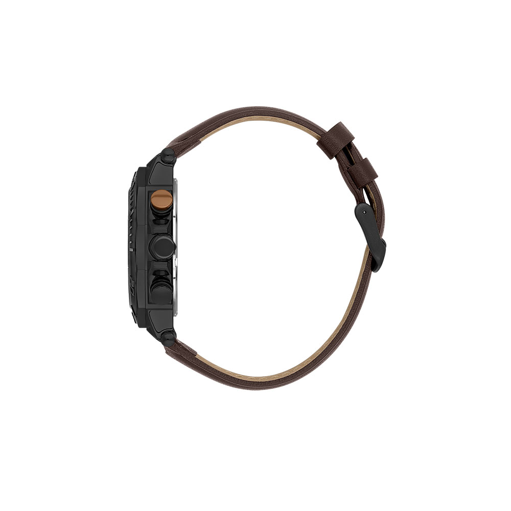 Carcasa robusta din aliaj metalic, cu un diametru de 45 mm, este completata de un cadran cafeniu care iradiaza eleganta. Geamul din cristal mineral rezistent la zgarieturi protejeaza afisajul analogic, iar rezistenta la apa de 5 atm face ceasul potrivit pentru activitati cotidiene, inclusiv inotul superficial.