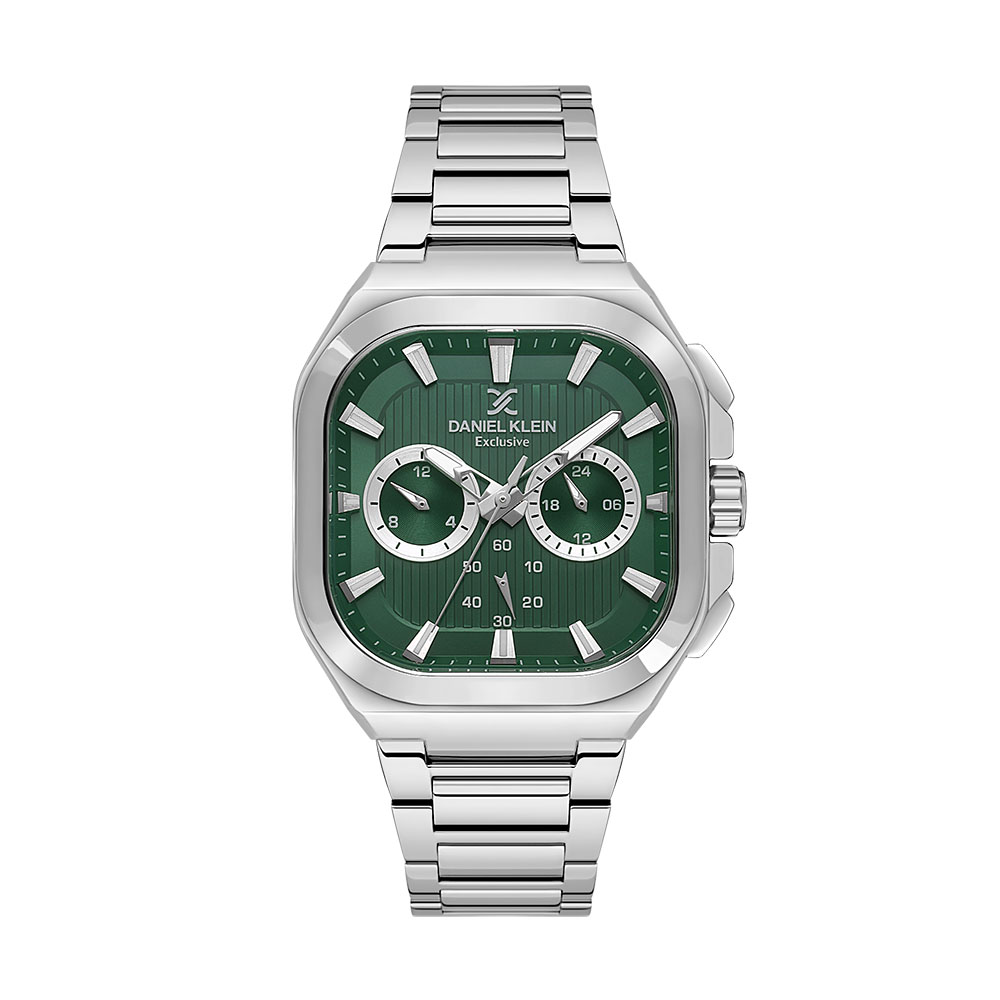 Carcasa dreptunghiulara din aliaj metalic, cu finisaj argintiu, gazduieste un cadran de un verde intens, texturat subtil, care ofera un contrast elegant cu indicatoarele si marcajele orare metalice. Ceasul este echipat cu un mecanism Quartz japonez Time Module Vd34b1, cunoscut pentru acuratetea sa de ±20 secunde/luna.