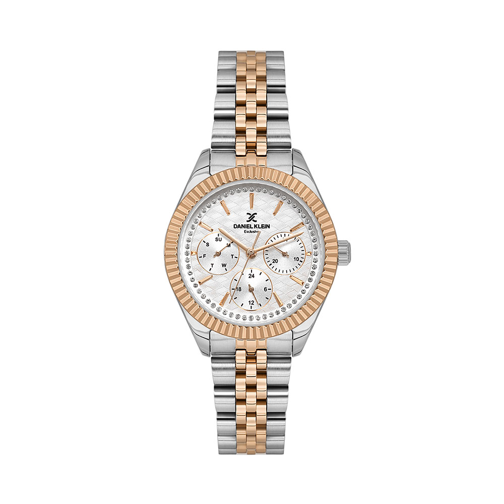 Ceasul de dama Daniel Klein Exclusive DK.1.13927.5 imbina eleganta moderna cu functionalitatea de zi cu zi, fiind o alegere ideala pentru femeile care apreciaza stilul si precizia. Designul sau rafinat se remarca printr-o combinatie sofisticata de auriu rose si argintiu, oferind un aspect bicolor ce adauga un plus de rafinament oricarei tinute.