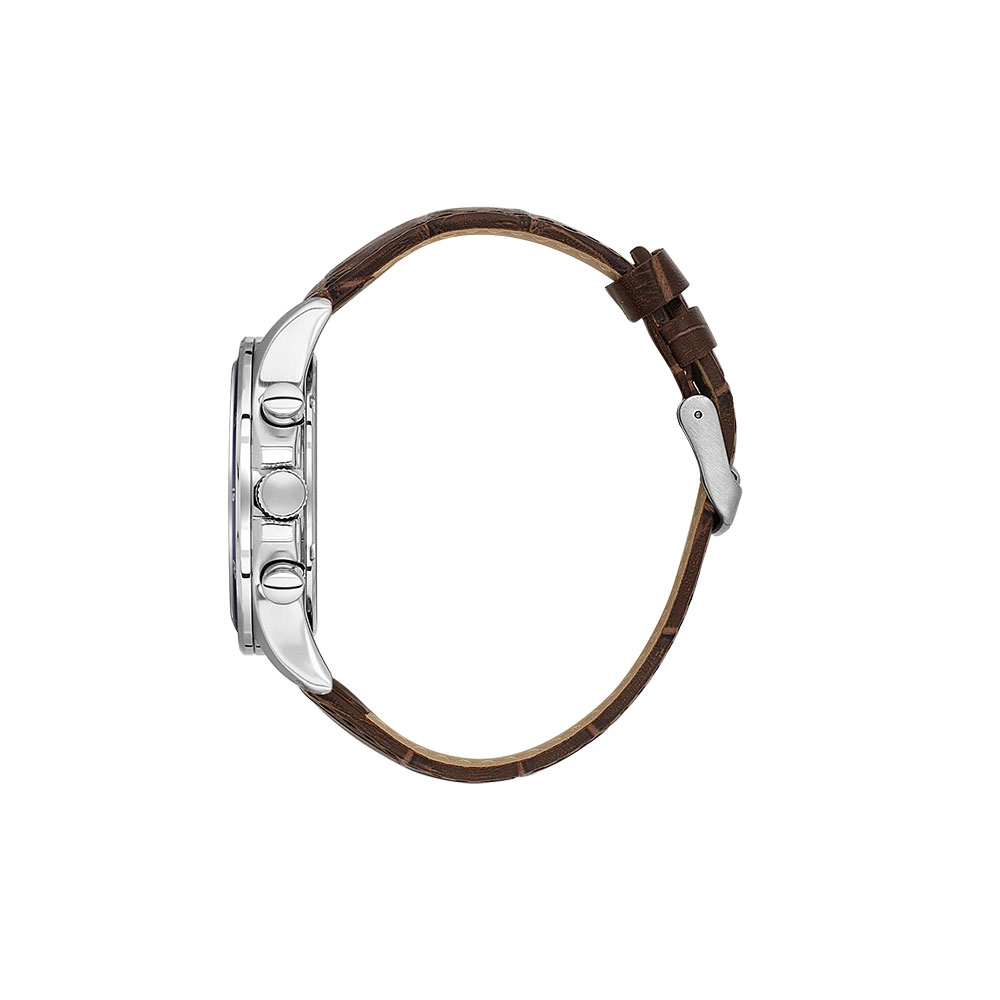 Bratara din piele cafenie, cu textura tip crocodil, este prevazuta cu sistem de inchidere cu catarama, oferind confort si siguranta la purtare. Mecanismul japonez Epson Vx9je1 cu quartz garanteaza precizie, cu o abatere de ±20 secunde/luna.