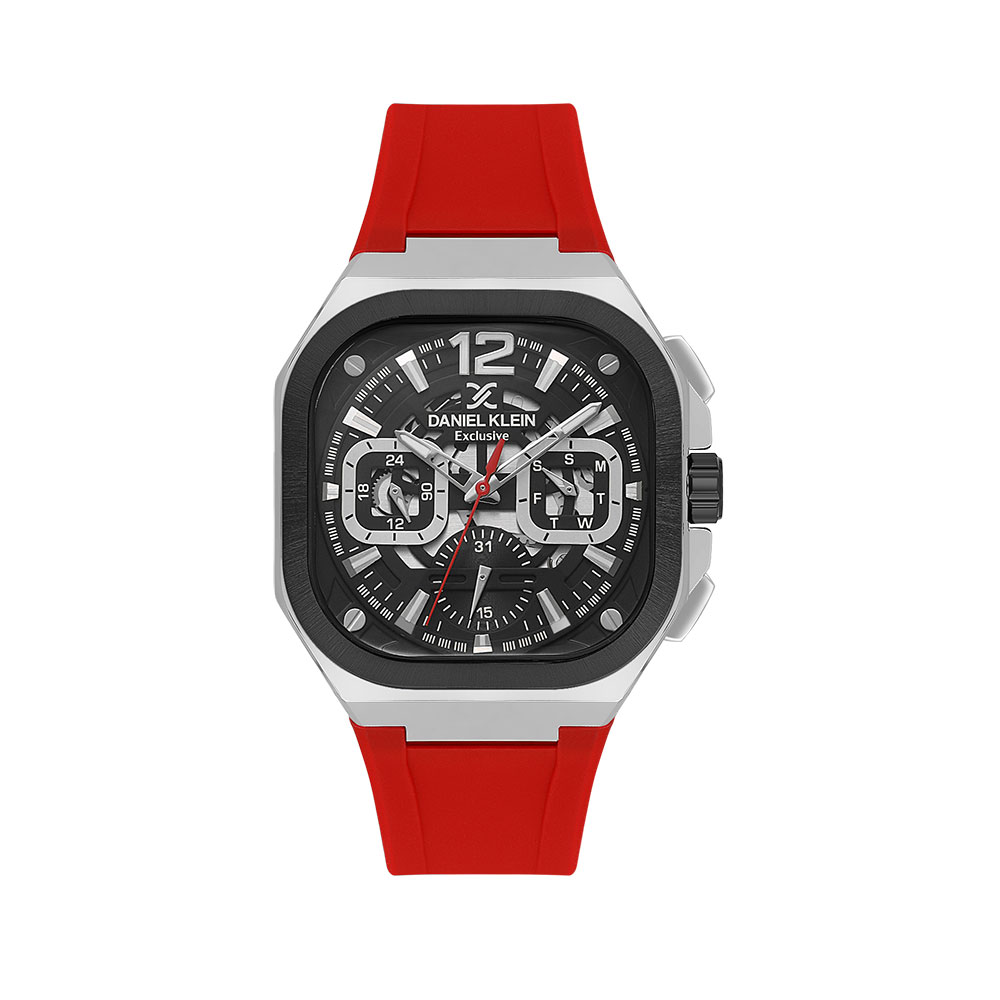 Ceasul de mana Daniel Klein Exclusive DK.1.14008.6 este alegerea ideala pentru barbatii care cauta un accesoriu sport cu un impact vizual puternic si functionalitate avansata. Combinand un design robust cu detalii tehnice de calitate, acest model impresioneaza prin forma dreptunghiulara a carcasei si contrastul cromatic indraznet dintre negru si rosu.