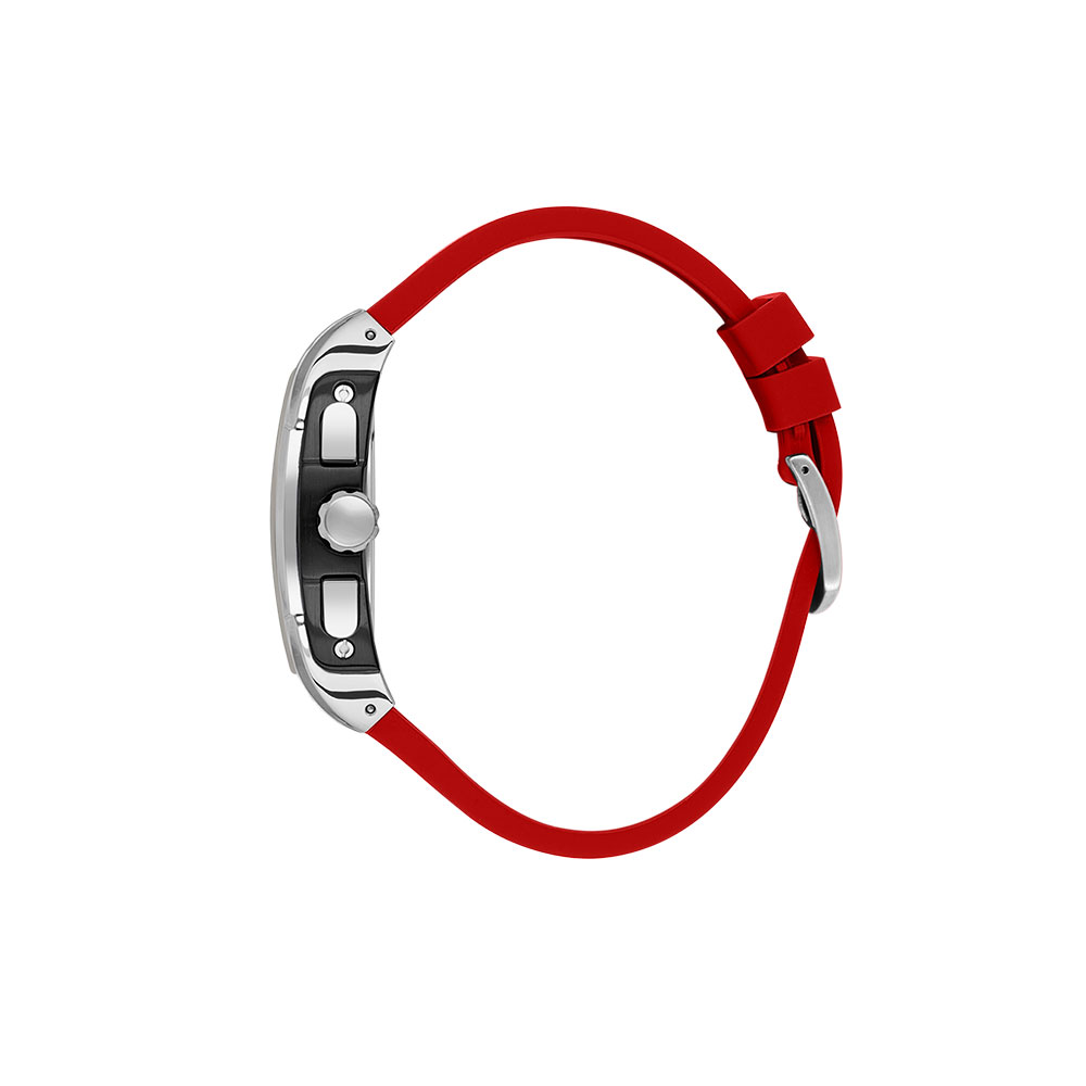 Bratara din silicon rosu este confortabila si durabila, adaptata perfect pentru un stil de viata activ. Sistemul de inchidere cu catarama garanteaza fixarea sigura pe incheietura. Geamul din cristal mineral protejeaza cadranul impotriva zgarieturilor, iar rezistenta la apa de 5 ATM face ca acest ceas sa fie potrivit si pentru utilizare in medii umede sau in timpul activitatilor usoare in aer liber.