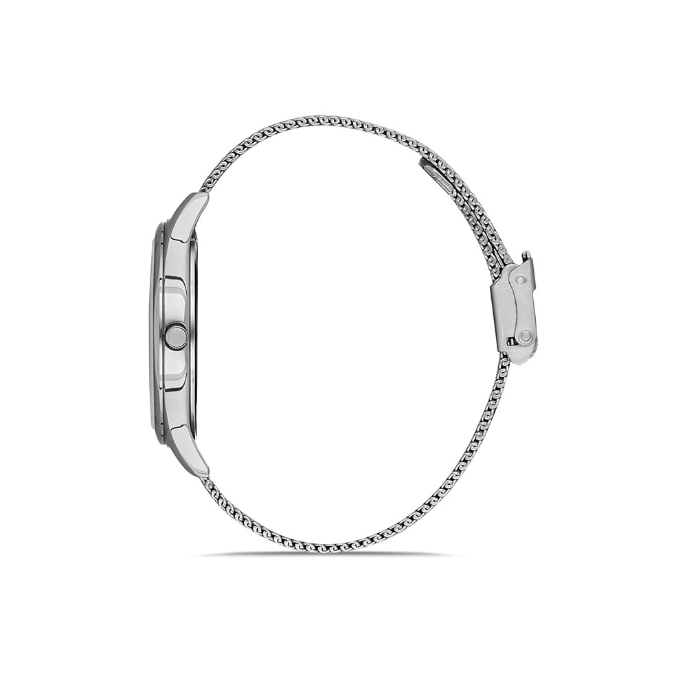 Cadran decorat cu pudra de zirconii; bratara tip mesh, cu inchizatoare reglabila.