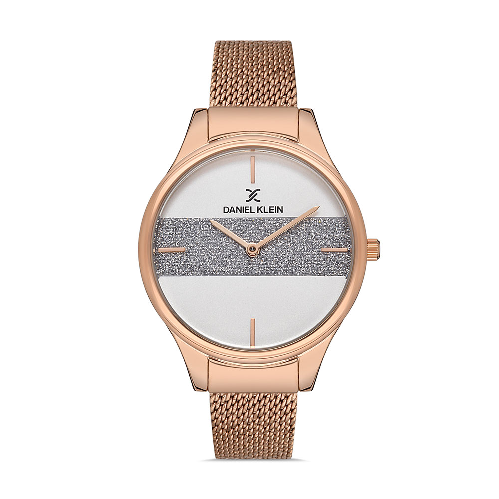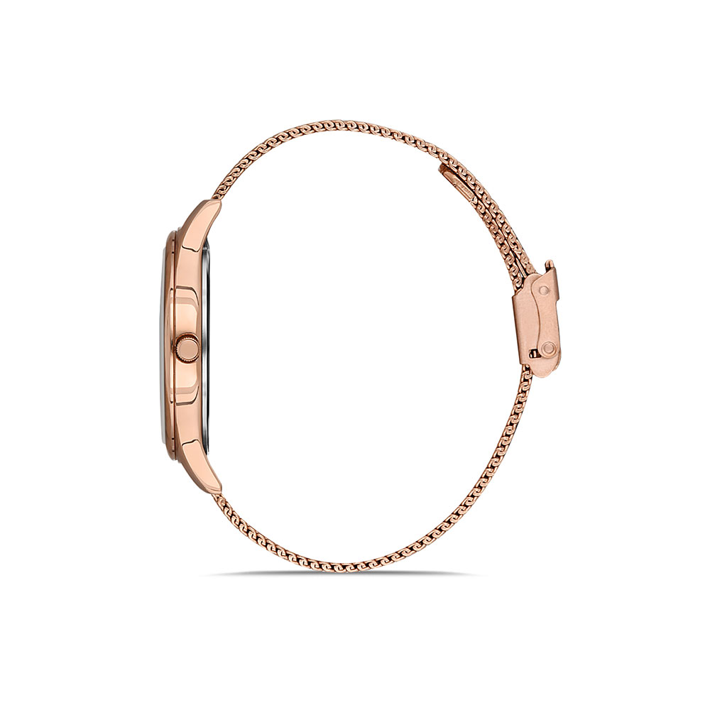 Cadran decorat cu pudra de zirconii; bratara tip mesh, cu inchizatoare reglabila.