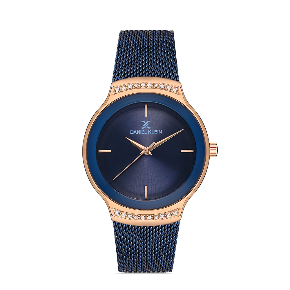 Carcasa decorata cu zirconii albe; bratara tip mesh, cu inchizatoare reglabila.