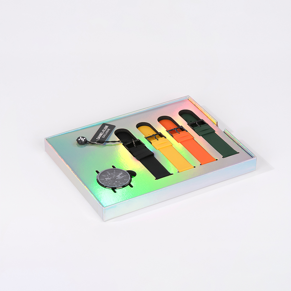 Cadranul negru contrastant, incadrat de o carcasa rotunda din aliaj metalic, este completat de un set de curele din silicon in culorile negru,galben,portocaliu si verde ce ofera confort si durabilitate. Rezistenta la apa de pana la 5 atm face ceasul potrivit pentru activitati cotidiene, inclusiv inotul superficial. Functionalitatile suplimentare includ afisare analogica, data, ziua saptamanii si optiunea de ora in format 12/24.