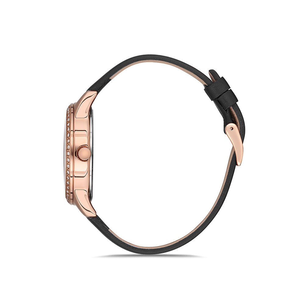 Cureaua din piele neagra confera confort si durabilitate, iar sistemul de inchidere cu catarama permite ajustarea usoara pentru o fixare perfecta pe incheietura. Cu o rezistenta la apa de 3 ATM, acest model este potrivit pentru utilizarea zilnica, protejandu-l impotriva stropilor accidentali.