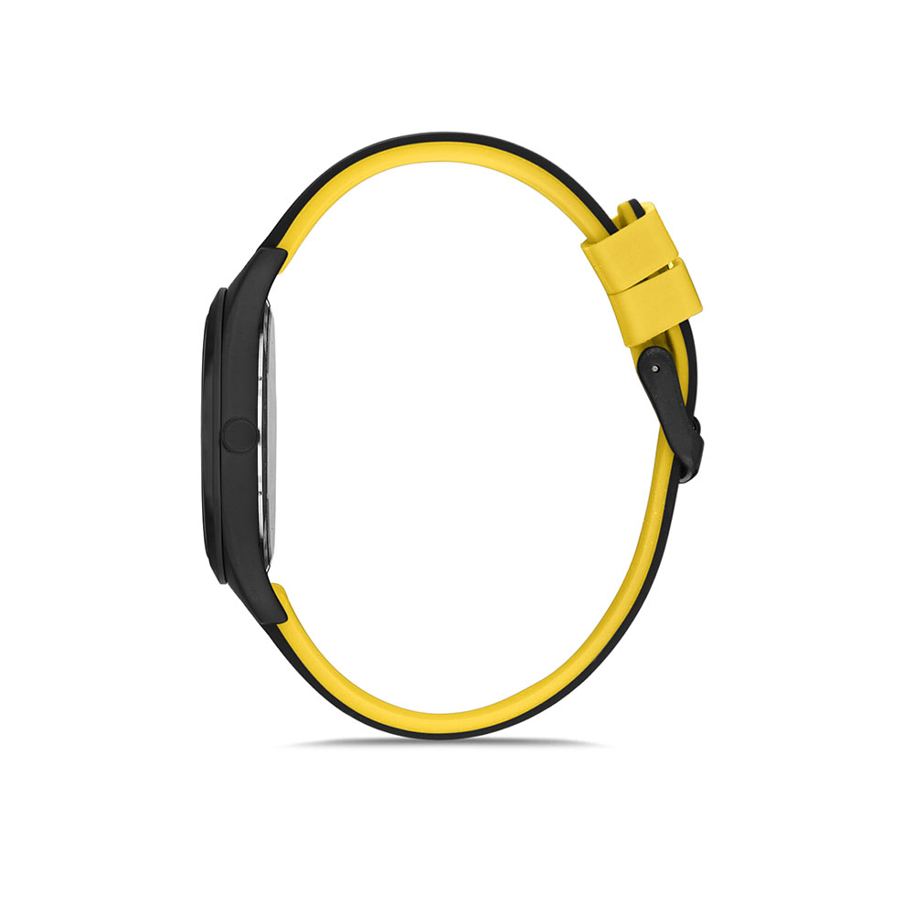 Carcasa rotunda, realizata din aliaj metalic negru, se imbina perfect cu cureaua din silicon negru cu accente galbene, garantand confort si durabilitate. Sistemul de inchidere cu catarama asigura o fixare sigura pe incheietura.