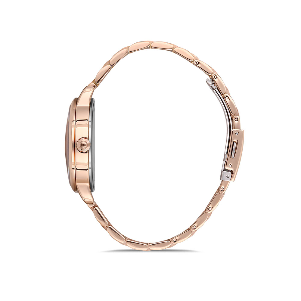 Cadran decorat cu zirconii; indicatoare luminoase; bratara tip zale, cu inchizatoare tip fluture, avand lungimea utila 18 cm si latimea de 1.8 cm.