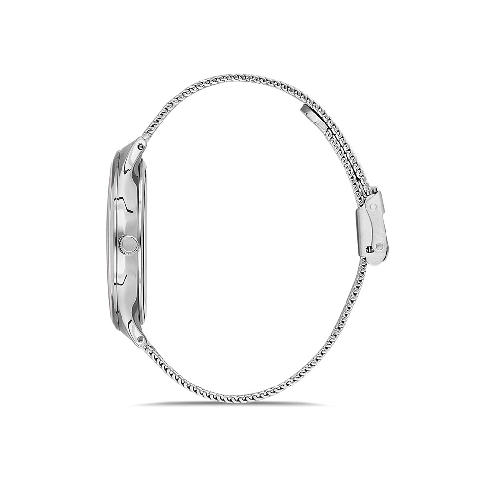 Geam cu suprafata antireflex; bratara tip mesh cu inchizatoare reglabila, avand lungimea utila 20 cm si latimea de 2.2 cm; afiseaza data curenta.