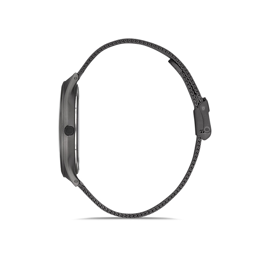 Bratara din otel inoxidabil antracit, cu un sistem de inchidere reglabil, confera confort si siguranta pe incheietura, fiind ideala pentru purtarea zilnica. Mecanismul quartz japonez asigura precizie si fiabilitate, avand o abatere de ±20 secunde pe luna.