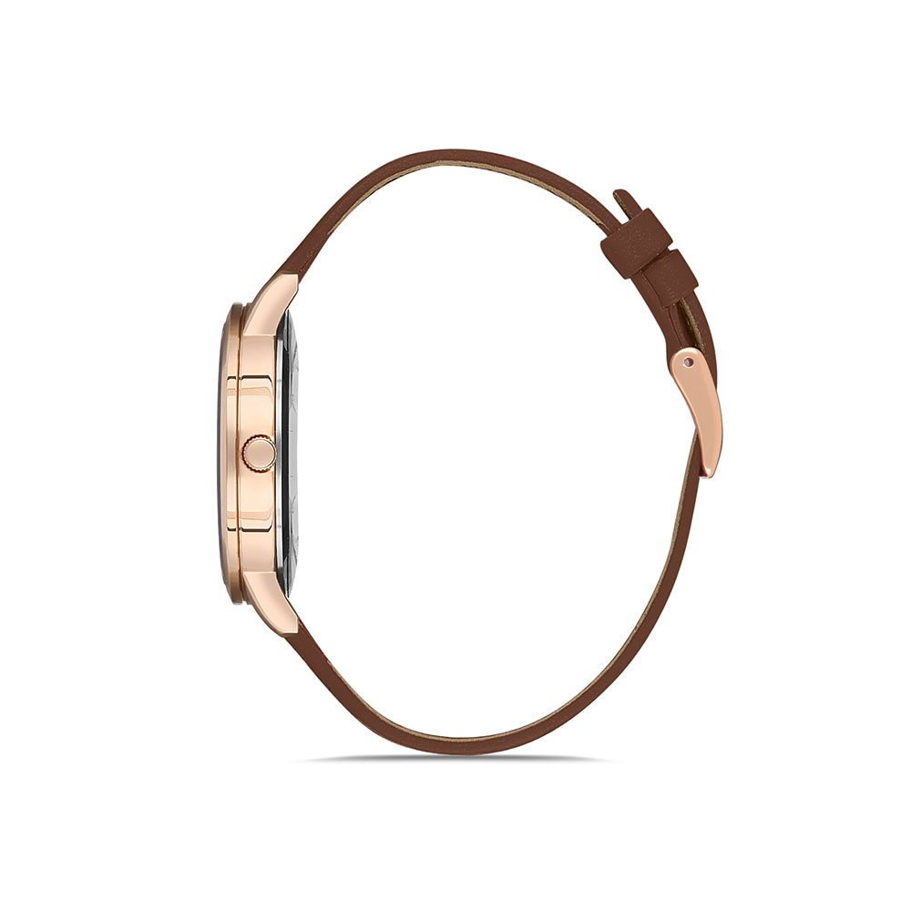 Cadran decorat cu zirconii; curea cu lungimea utila 19 cm si latimea 1.6 cm.