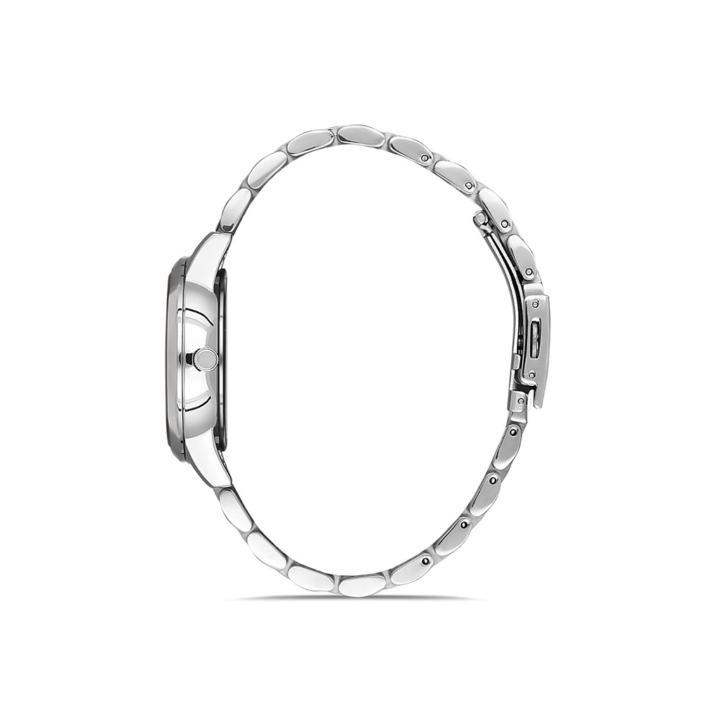 Cadran decorat cu zirconii; bratara tip zale, cu inchizatoare tip fluture, avand lungimea utila de 18 cm.