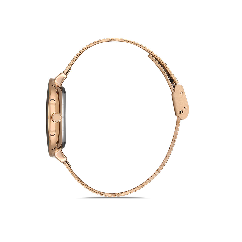 - Carcasa rotunda aurie rose, realizata din aliaj metalic, cu un diametru de 35 mm si grosime de 8 mm, potrivita pentru orice tip de incheietura.