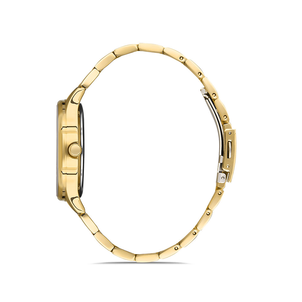 Indicatoare luminoase; cadran decorat cu zirconii; bratara tip zale, cu in chizatoare tip fluture; fara indicator secunde.