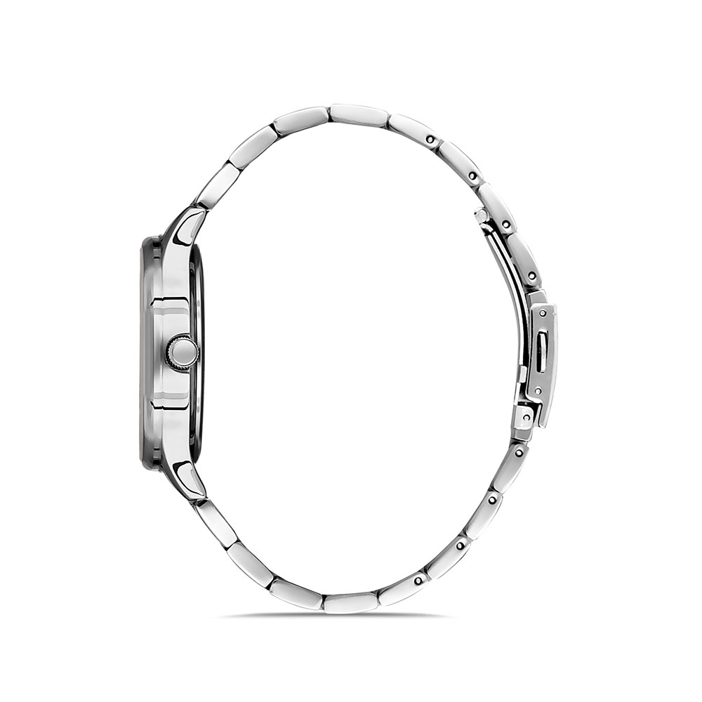 Indicatoare luminoase; cadran decorat cu zirconii; bratara tip zale, cu in chizatoare tip fluture; fara indicator secunde.