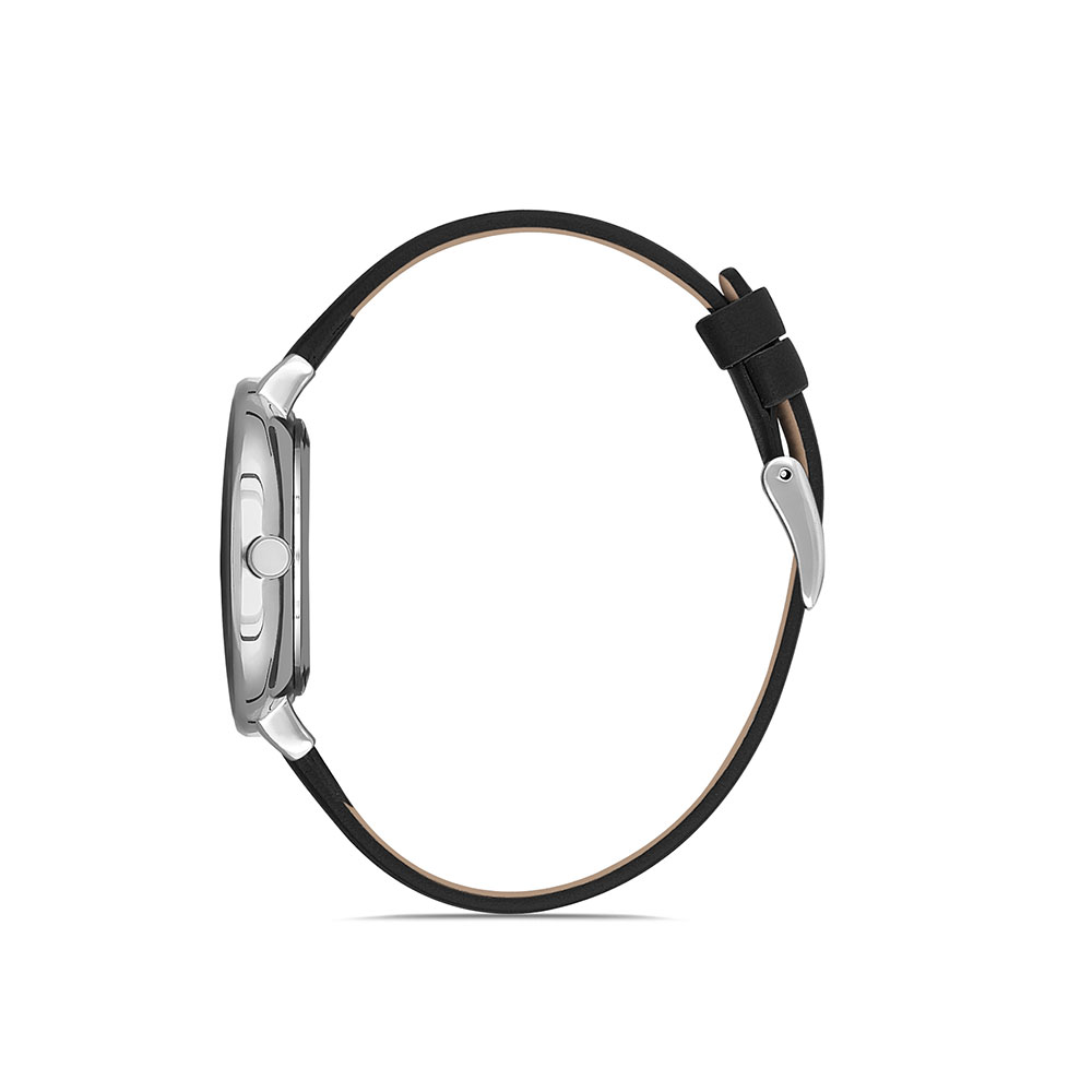 Cadran decorat cu zirconii albe; fara indicator secunde.
