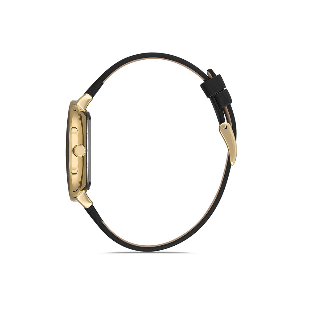 Cadran decorat cu zirconii albe; fara indicator secunde.