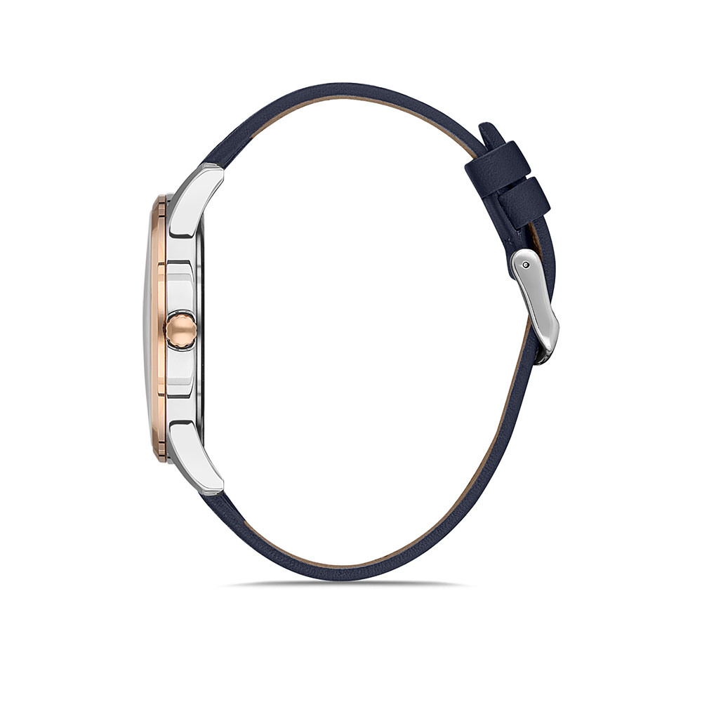 Indicatoare luminoase; carcasa argintie, cu bezel decorativ auriu rose; afiseaza data curenta.