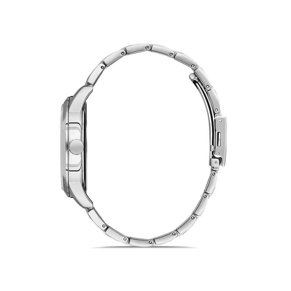 Indicatoare luminoase; bratara tip zale, in doua tonuri, argintiu mat si lucios, cu inchizatoare tip fluture; afiseaza data curenta.