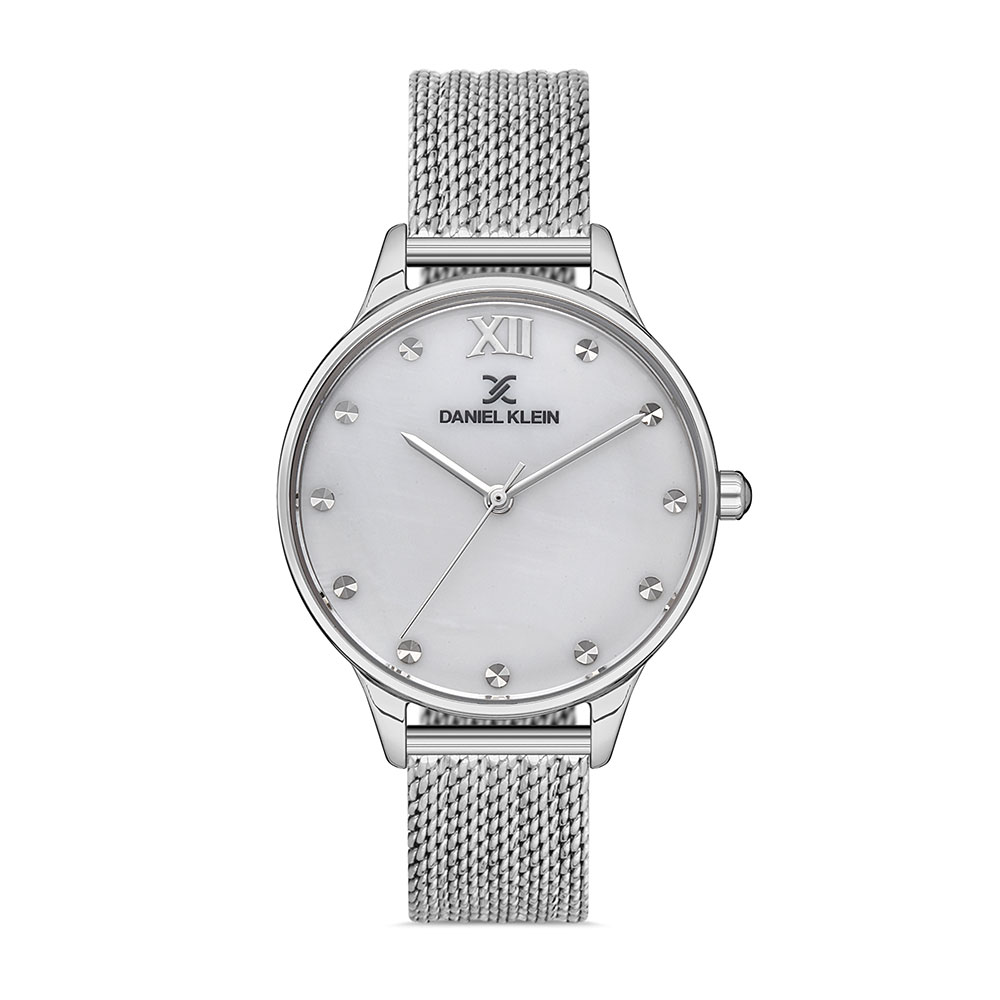 Cadran alb sidefat; bratara tip mesh, cu inchizatoare reglabila.