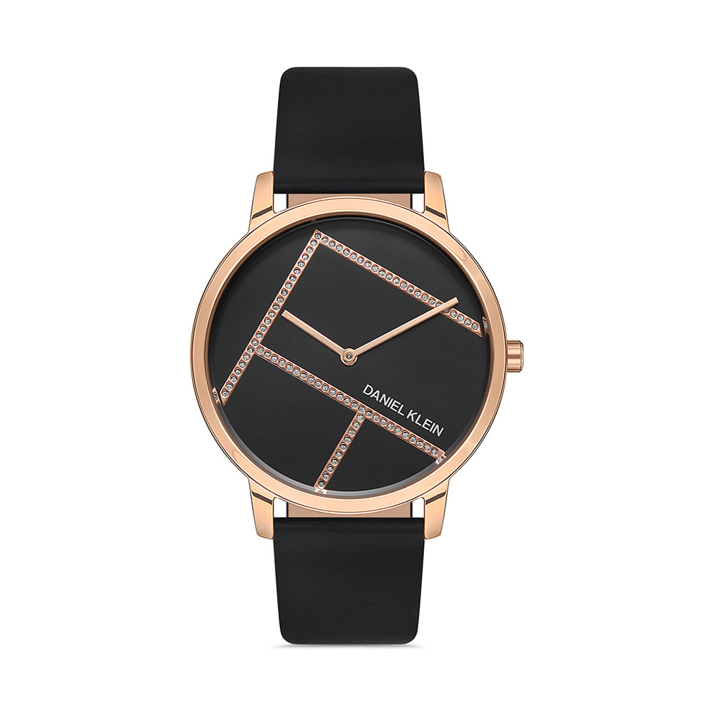 Cadranul negru, decorat cu zirconii albe dispuse geometric, creeaza un efect vizual spectaculos, atragand atentia prin stralucirea subtila. Carcasa auriu rose din aliaj metalic adauga un plus de lux si rafinament, completand perfect designul elegant.