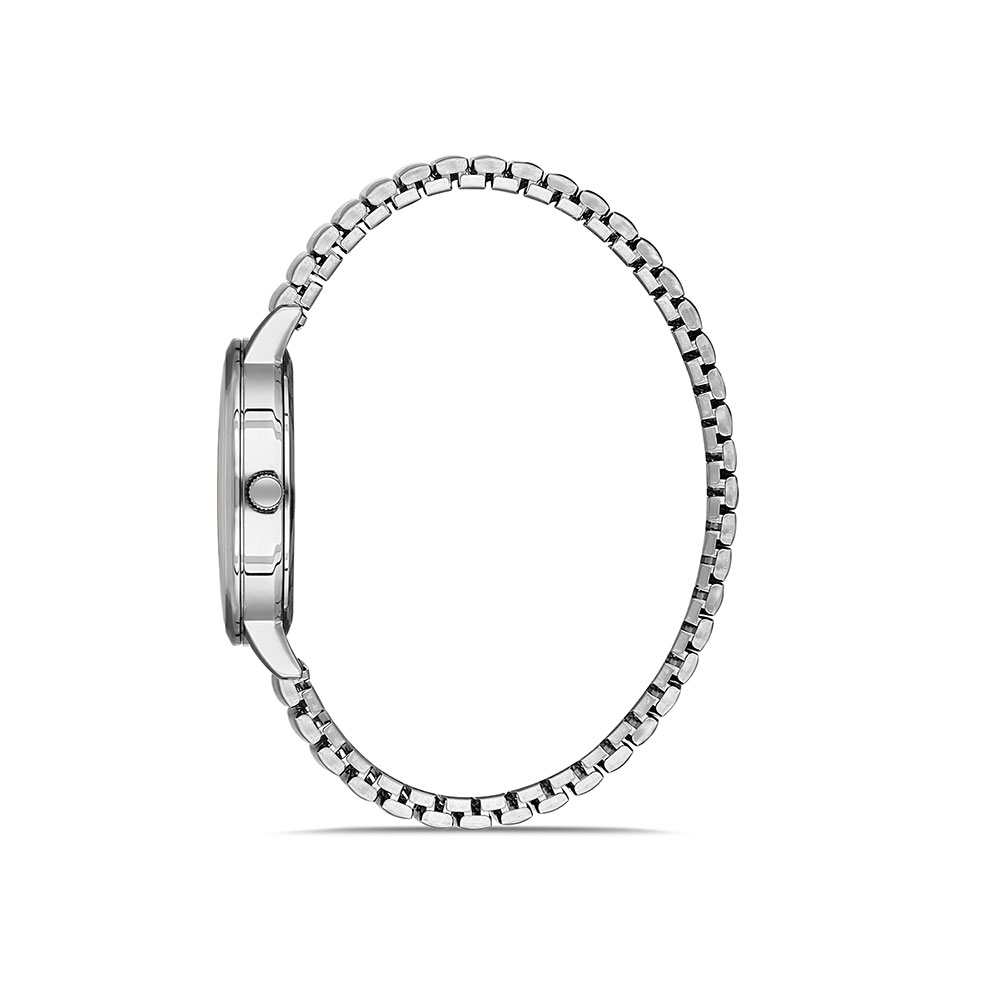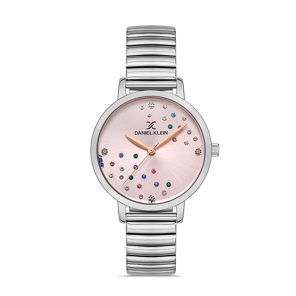 Cadran decorat cu zirconii multicolore; bratara elastica.