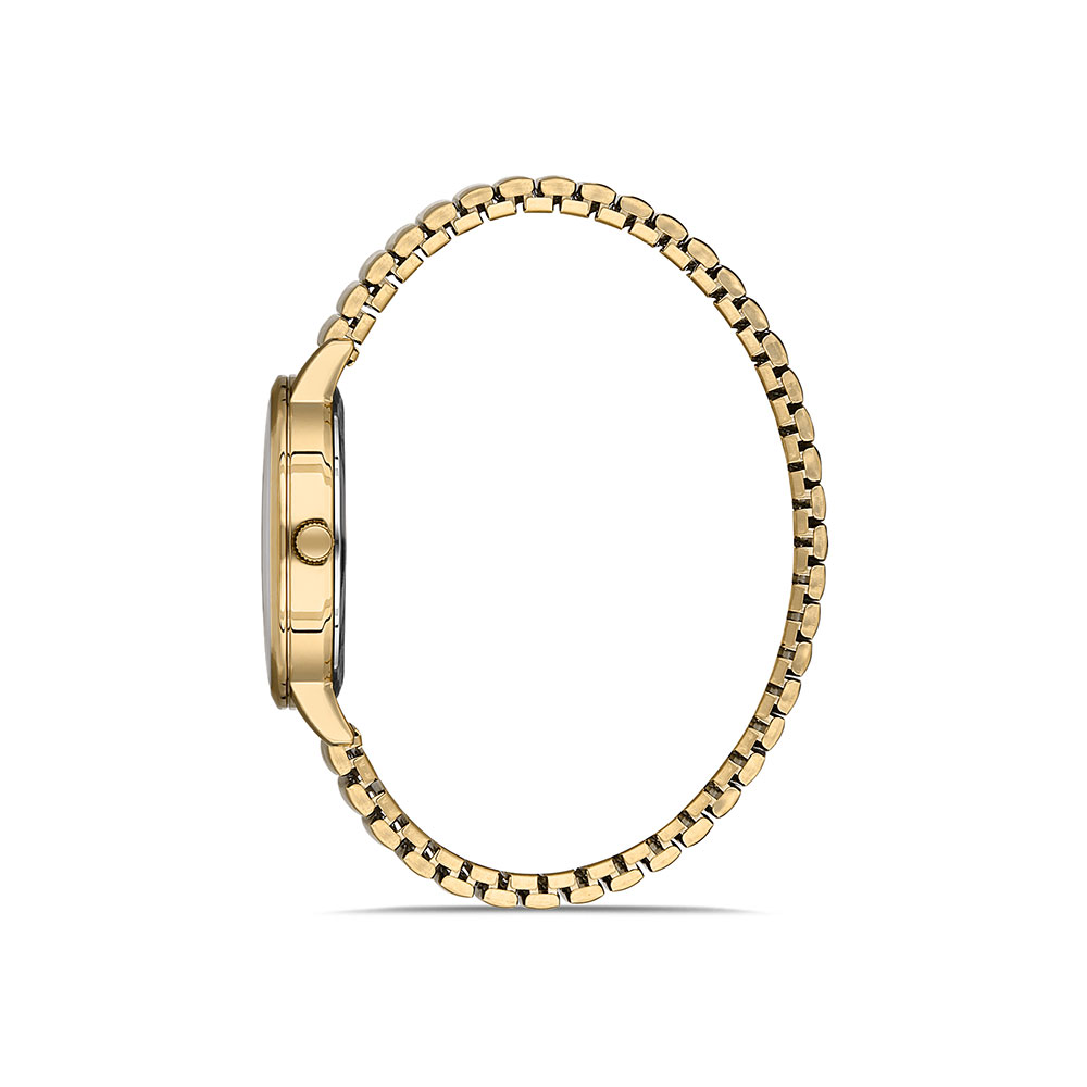 Cadran decorat cu zirconii albe; bratara elastica.