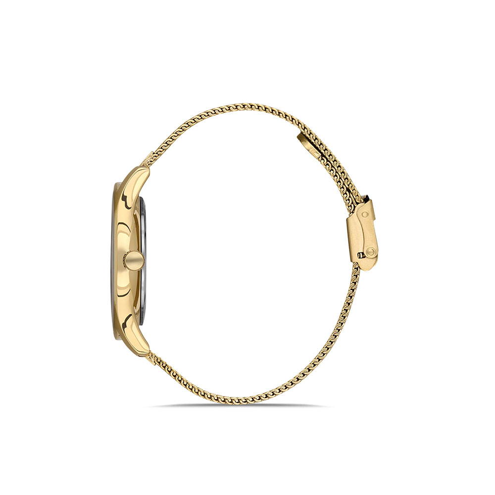 Cadran decorat cu zirconii albe; bratara tip mesh, cu inchizatoare reglabila.
