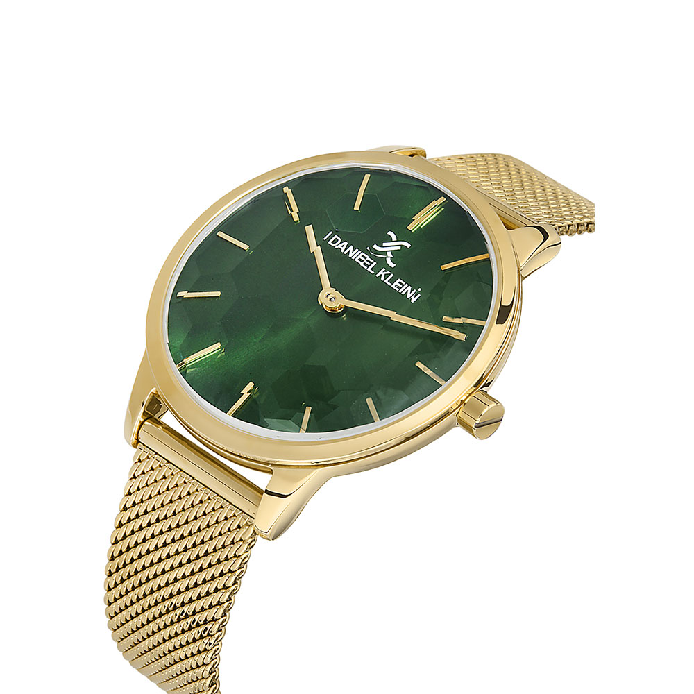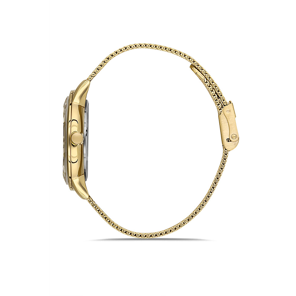 Geam cu suprafata bombata si fatetata in forma de fagure; bratara tip mesh, cu inchizatoare reglabila.