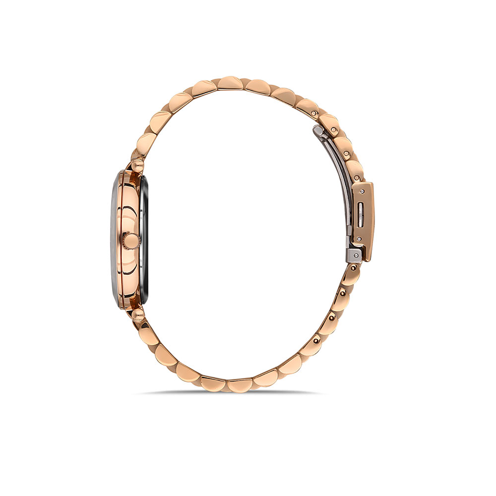 Cadranul negru cu geam fetetat si cristale in locul cifrelor il fac un model stralucitor si deosebit.
