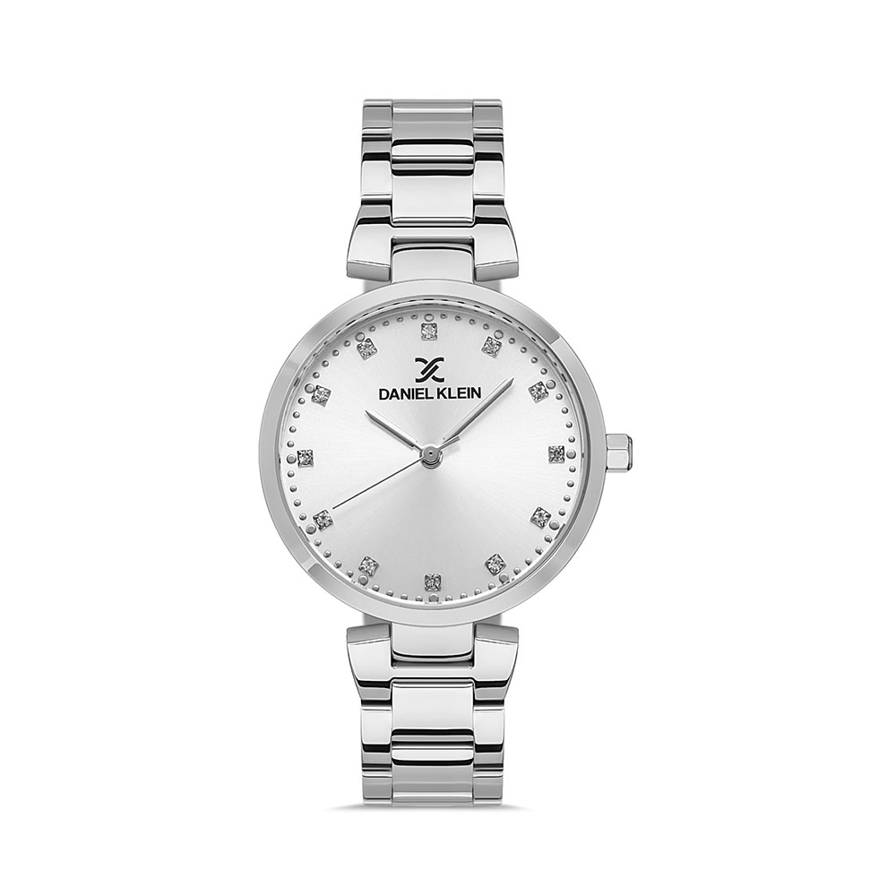 Bratara din otel inoxidabil ofera un aspect durabil si lucios, iar designul minimalist al cadranului, cu cristale in locul cifrelor, adauga o nota de stralucire si rafinament.