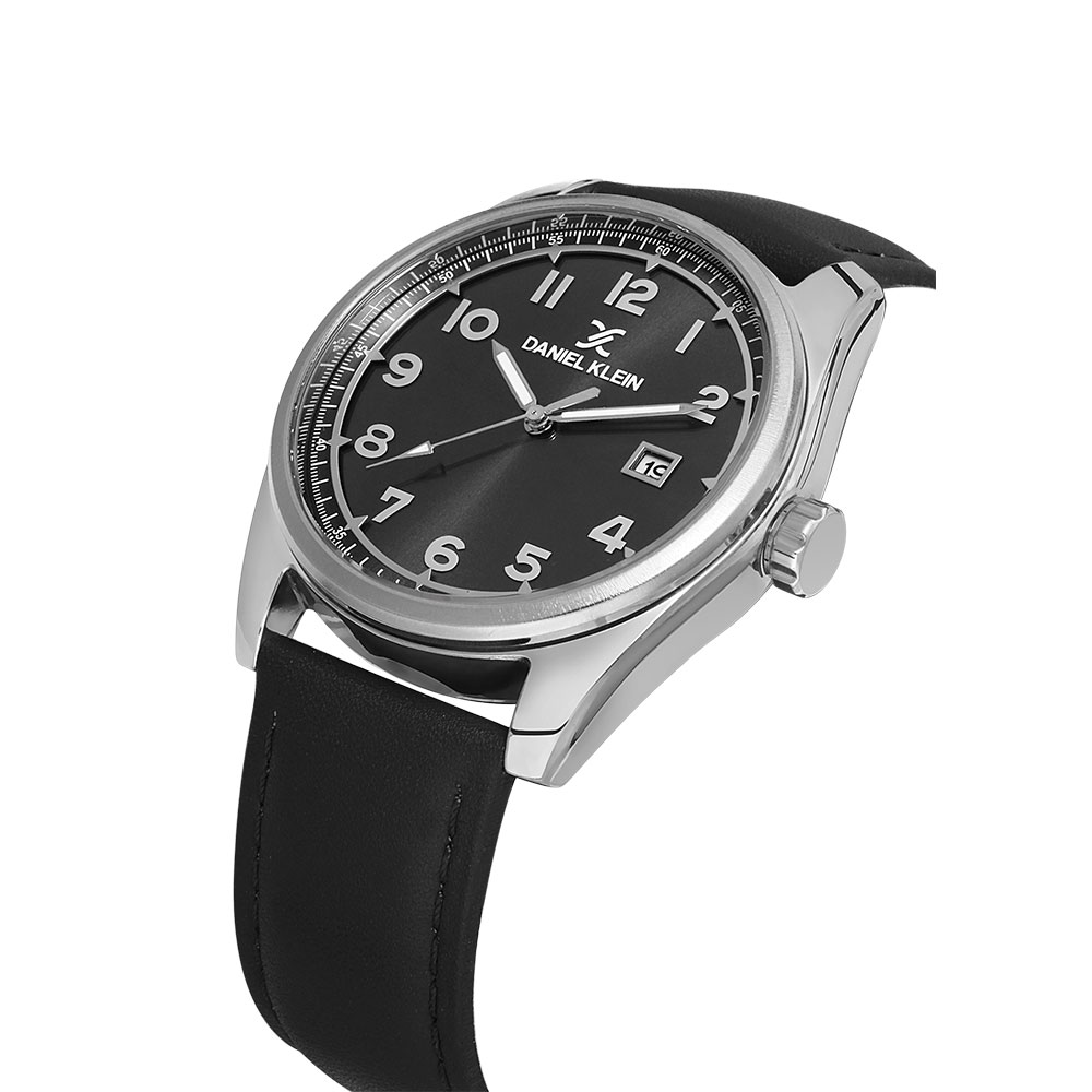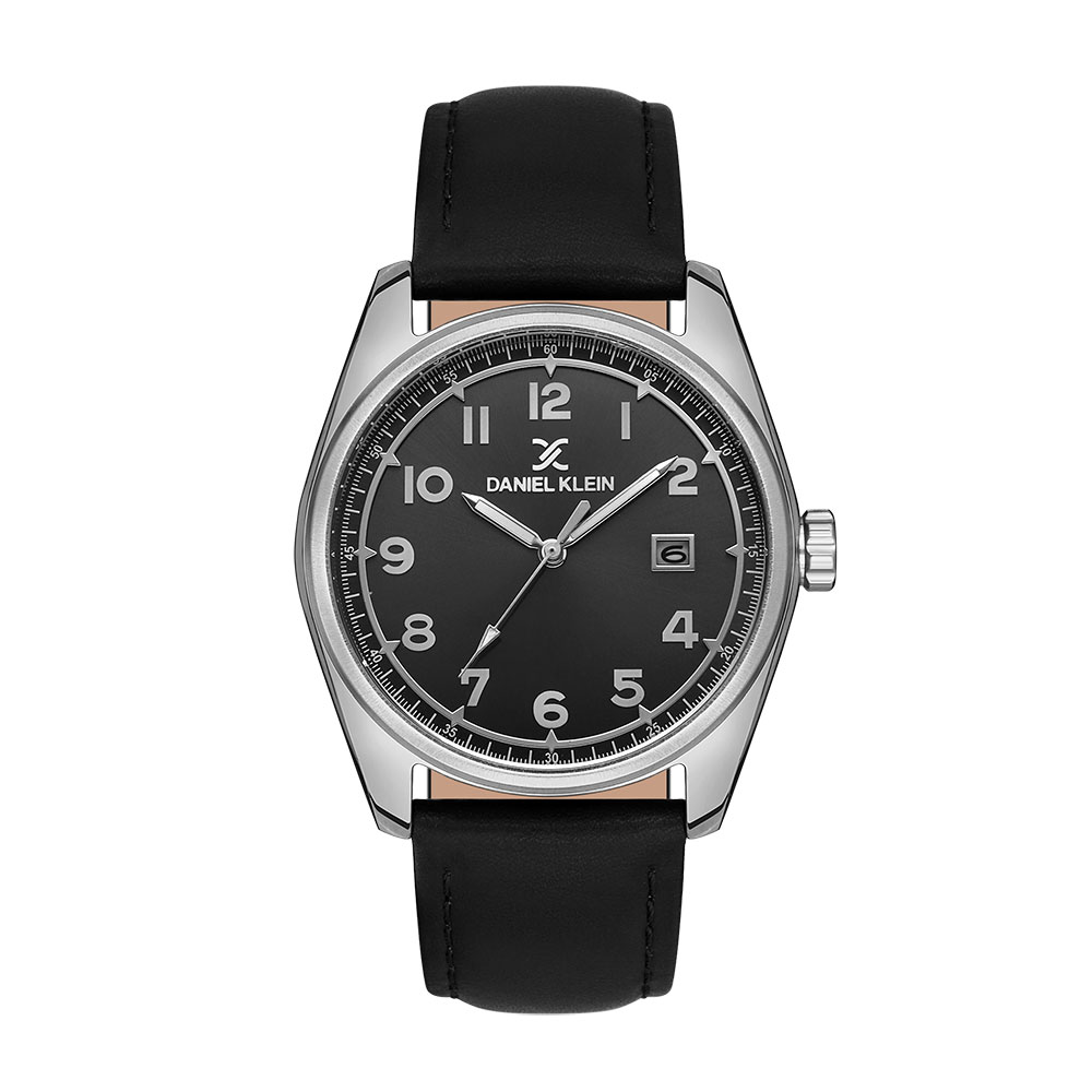 Ceas de barbati Daniel Klein DK.1.13383.1 cu curea neagra de piele si un design simplu si elegant. Cureaua din piele neagra si cadranul negru cu cifre albe sunt caracteristici clasice si versatile ce il definesc. Afisarea datei in locul orei 3 adauga o functionalitate suplimentara.
