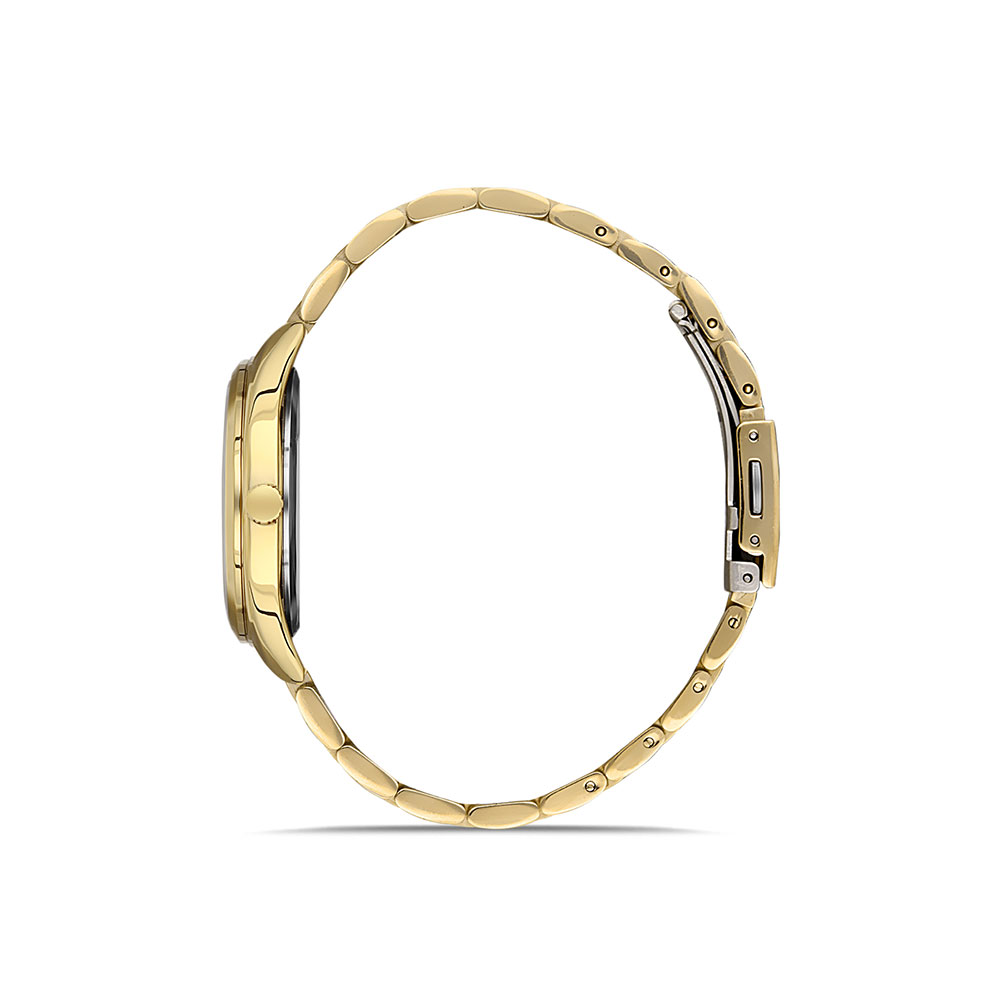 Bratara este de tip zale din otel inoxidabil de culoare aurie, perfect asortata si cu aratatoarele de aceeasi culoare.