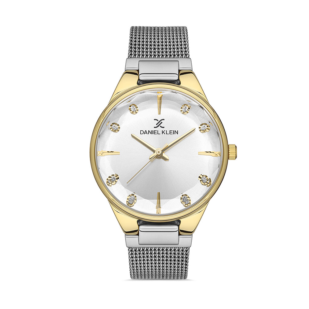 Ceasul de dama Daniel Klein Premium in doua culori, are o bratara reglabila de tip mesh, confectionata din otel inoxidabil de culoare argintie.