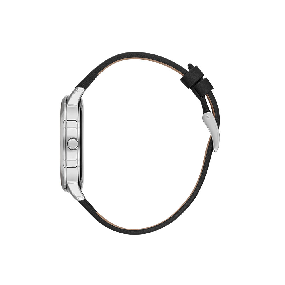 Cureaua din piele neagra adauga un plus de confort si rafinament, fiind usor de ajustat datorita sistemului de inchidere cu catarama. Mecanismul Quartz japonez Epson Y121f1 garanteaza precizia si fiabilitatea, avand o abatere de doar ±20 secunde pe luna.