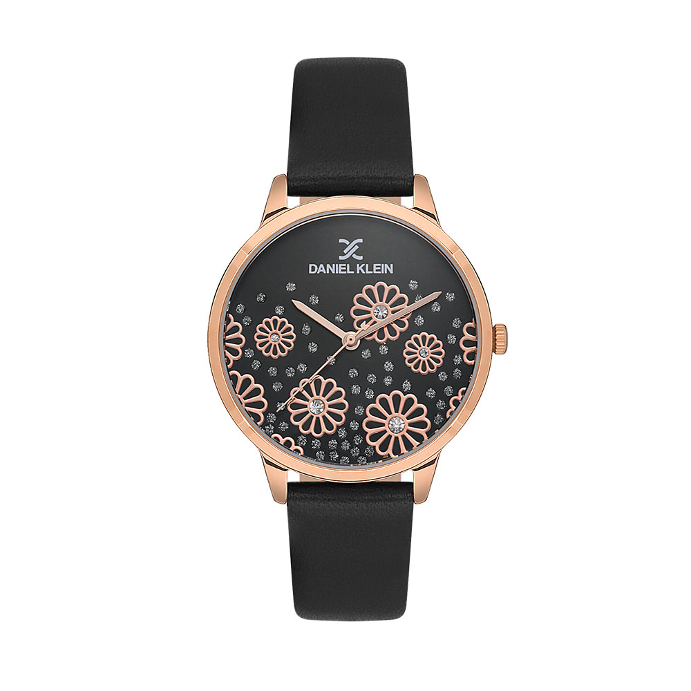 Cu un cadran negru decorat cu motive florale aurii rose si accente stralucitoare, acest ceas devine rapid punctul de atractie al oricarei tinute. Carcasa aurie rose din aliaj metalic completeaza perfect designul, oferind un aer modern si rafinat.