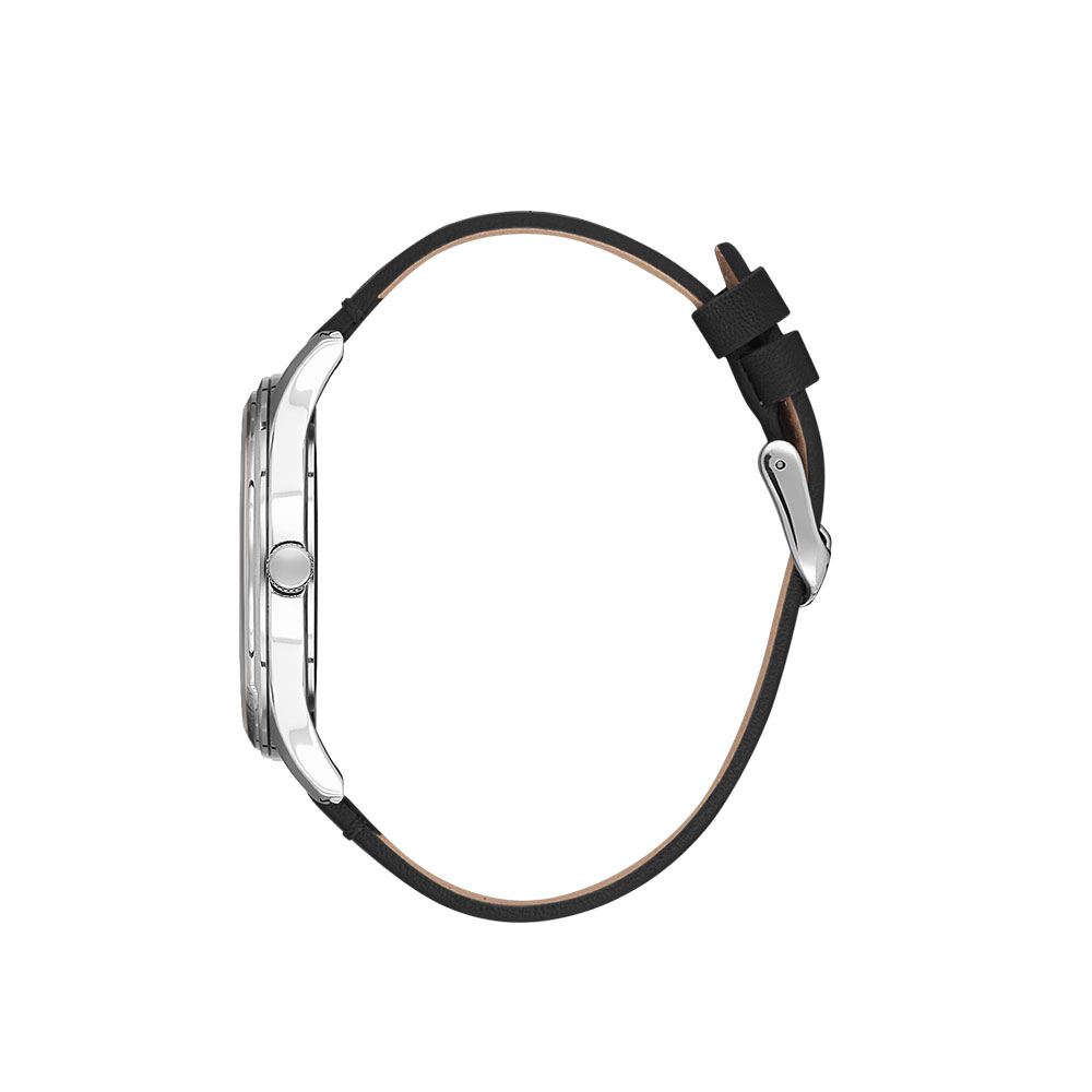 Carcasa rotunda, cu un diametru de 43 mm, este realizata din aliaj metalic argintiu, oferind durabilitate si un aspect sofisticat. Cadranul argintiu completeaza perfect designul, fiind protejat de un cristal mineral rezistent la zgarieturi.
