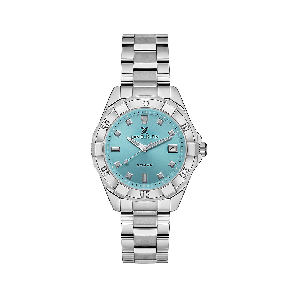 Cu un cadran de culoare mint, acest ceas atrage atentia prin eleganta si prospetimea nuantei sale. Carcasa rotunda, realizata din aliaj metalic argintiu, ofera un aspect rafinat si rezistenta sporita, in timp ce bratara din otel inoxidabil argintiu completeaza perfect designul luxos.