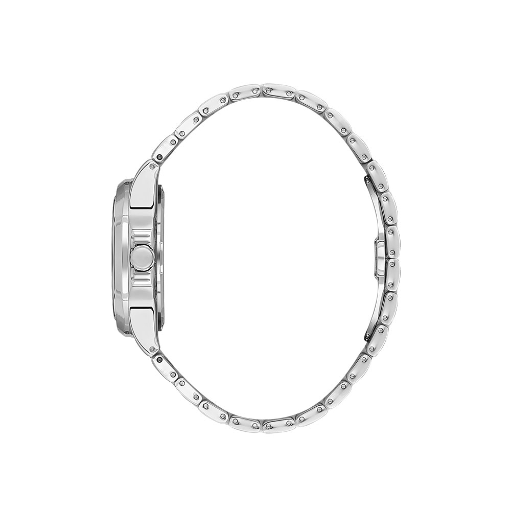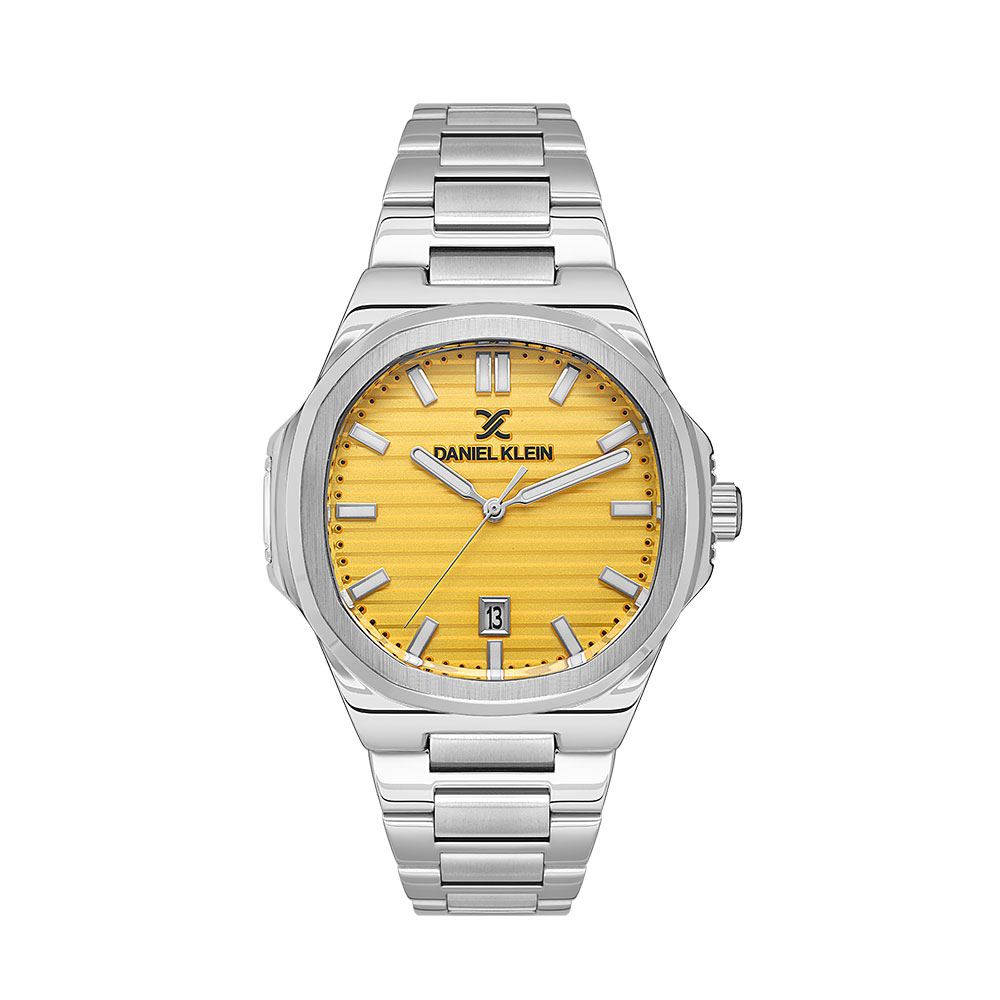 Cadranul galben cu textura distincta adauga un plus de originalitate, in timp ce marcajele orare si indicatoarele argintii ofera un contrast elegant si o lizibilitate excelenta. Mecanismul Quartz japonez Miyota 2315 garanteaza o acuratete deosebita, cu o abatere de doar ±20 secunde pe luna.