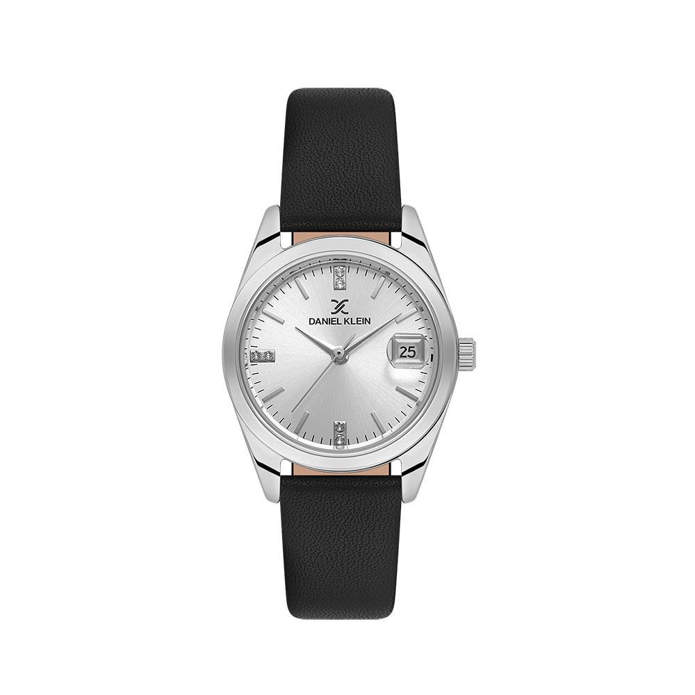 Fiecare detaliu al ceasului Daniel Klein Premium este meticulos finisat. De la carcasa rotunda argintie, realizata din aliaj metalic, la curea din piele argintie care se inchide printr-o catarama eleganta, totul este proiectat pentru confort si durabilitate. Geamul din cristal mineral protejeaza cadranul argintiu, imbogatit cu indicatoare de ora stralucitoare si o fereastra pentru data, adaugand un plus de utilitate.