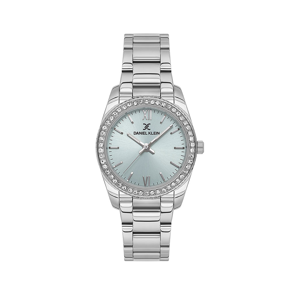 Fiecare detaliu al ceasului Daniel Klein Premium a fost meticulos gandit pentru a asigura atat functionalitate cat si estetica superioara. Cadranul de culoare vernil, impreuna cu carcasa argintie rotunda incrustata cu cristale, confera o nota de lux si distincție. Bratara din otel inoxidabil in culoare argintie este atat de versatila incat poate fi asortata cu usurinta la orice tinuta, de la cea casual la cea de seara.