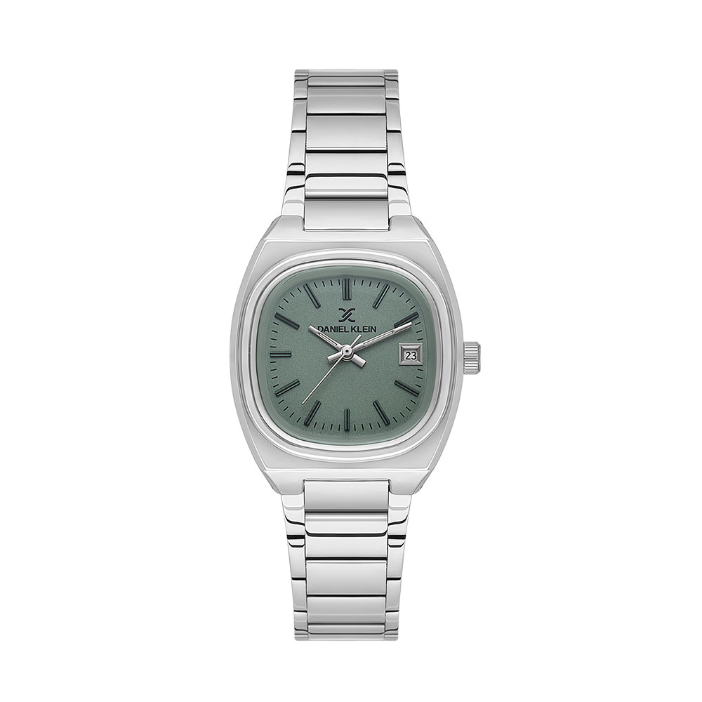 Dotat cu un mecanism quartz japonez Epson Vx12e11, ceasul promite o abatere minima de ±20 secunde pe luna, asigurand astfel precizie si durabilitate. Afisajul analogic, protejat de un cristal mineral dur, prezinta o culoare vernil captivanta ce se distinge pe cadranul dreptunghiular argintiu.