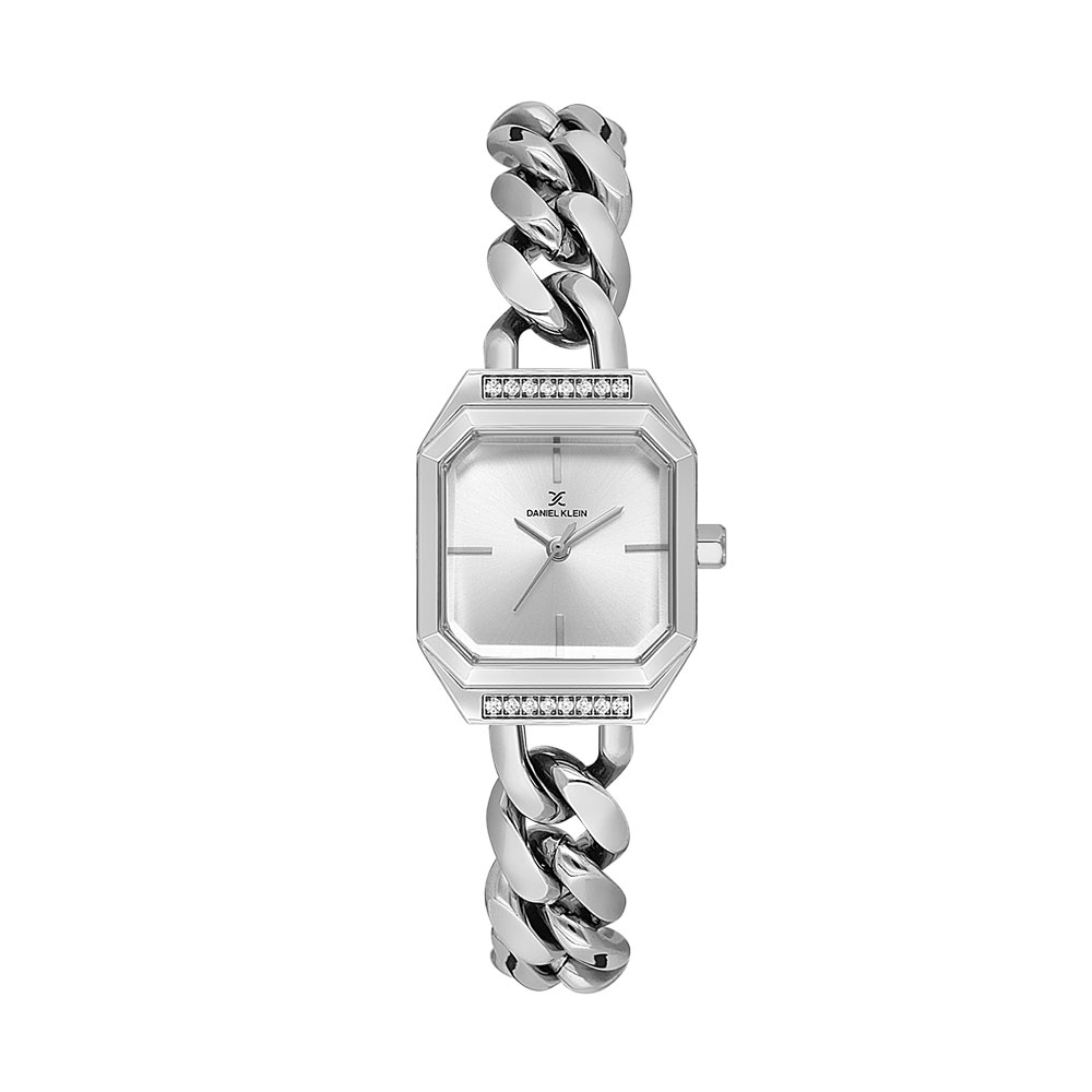 Carcasa dreptunghiulara, realizata din aliaj metalic argintiu, impreuna cu bratara din otel inoxidabil, ofera un aspect luxos si durabil. Geamul din cristal mineral protejeaza ceasul impotriva zgarieturilor, mentinandu-l ca nou pentru o lunga perioada de timp. Cadranul argintiu, impreuna cu detaliile subtile, adauga un plus de eleganta, facand acest ceas perfect pentru orice ocazie, fie ea casual sau formala.