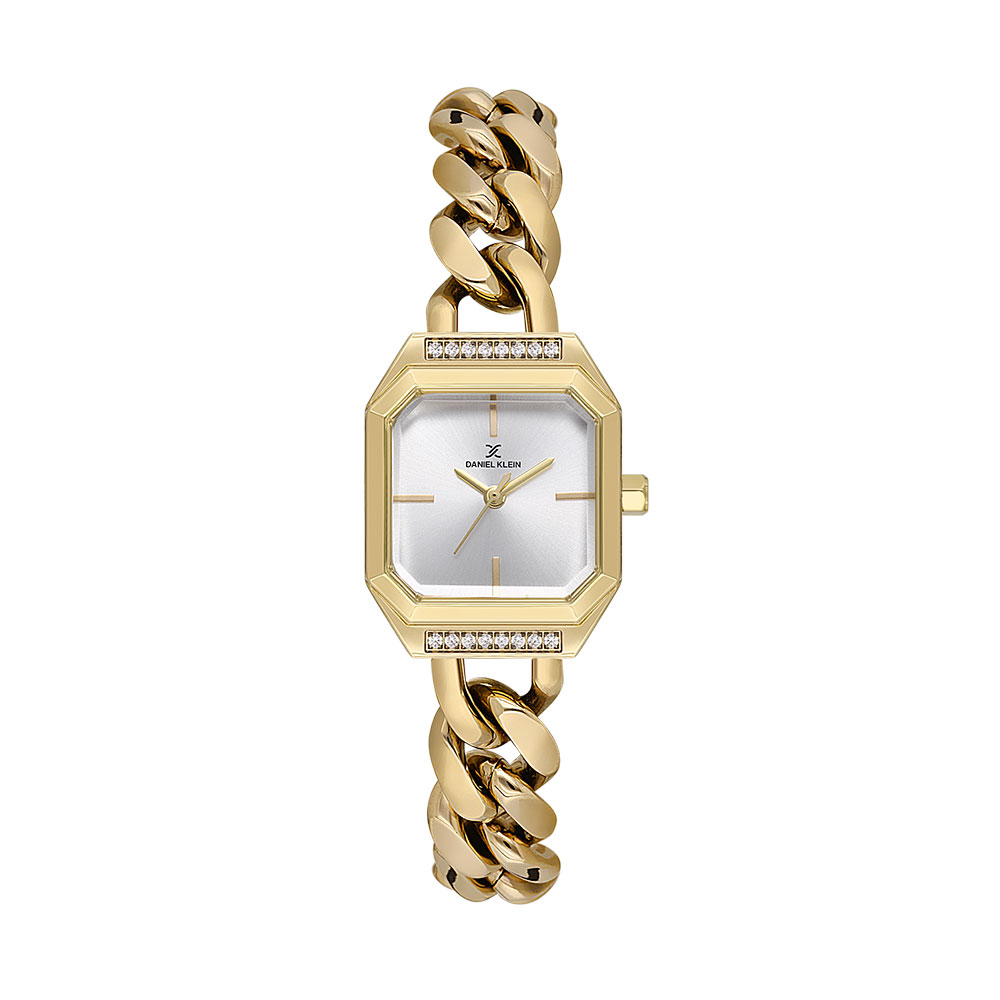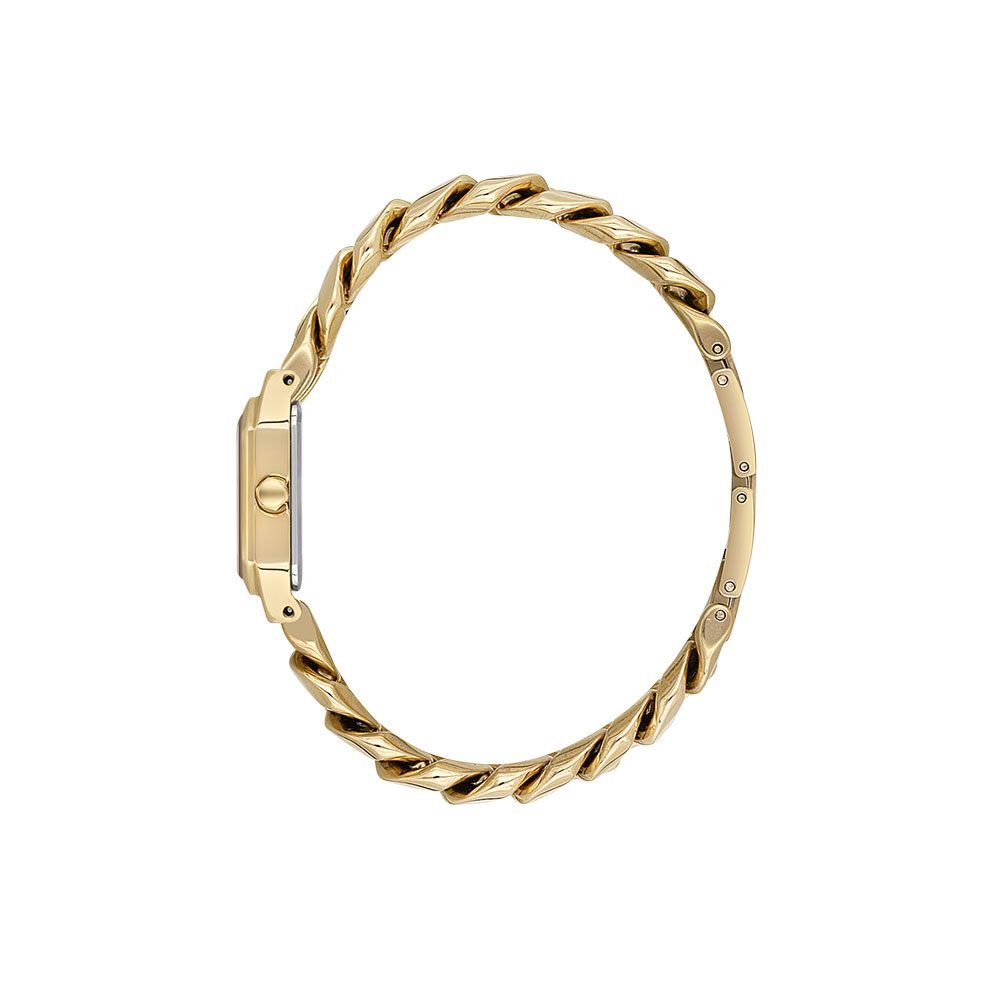 Bratara ceasului, realizata din otel inoxidabil cu culoare auriu, se remarca printr-un design inovativ de tip bijuterie, ce se potriveste perfect la orice tinuta, fie ea casual sau de ocazie. Rezistenta la apa de 3 atm il face ideal pentru uz zilnic, protejandu-l impotriva stropilor de apa.