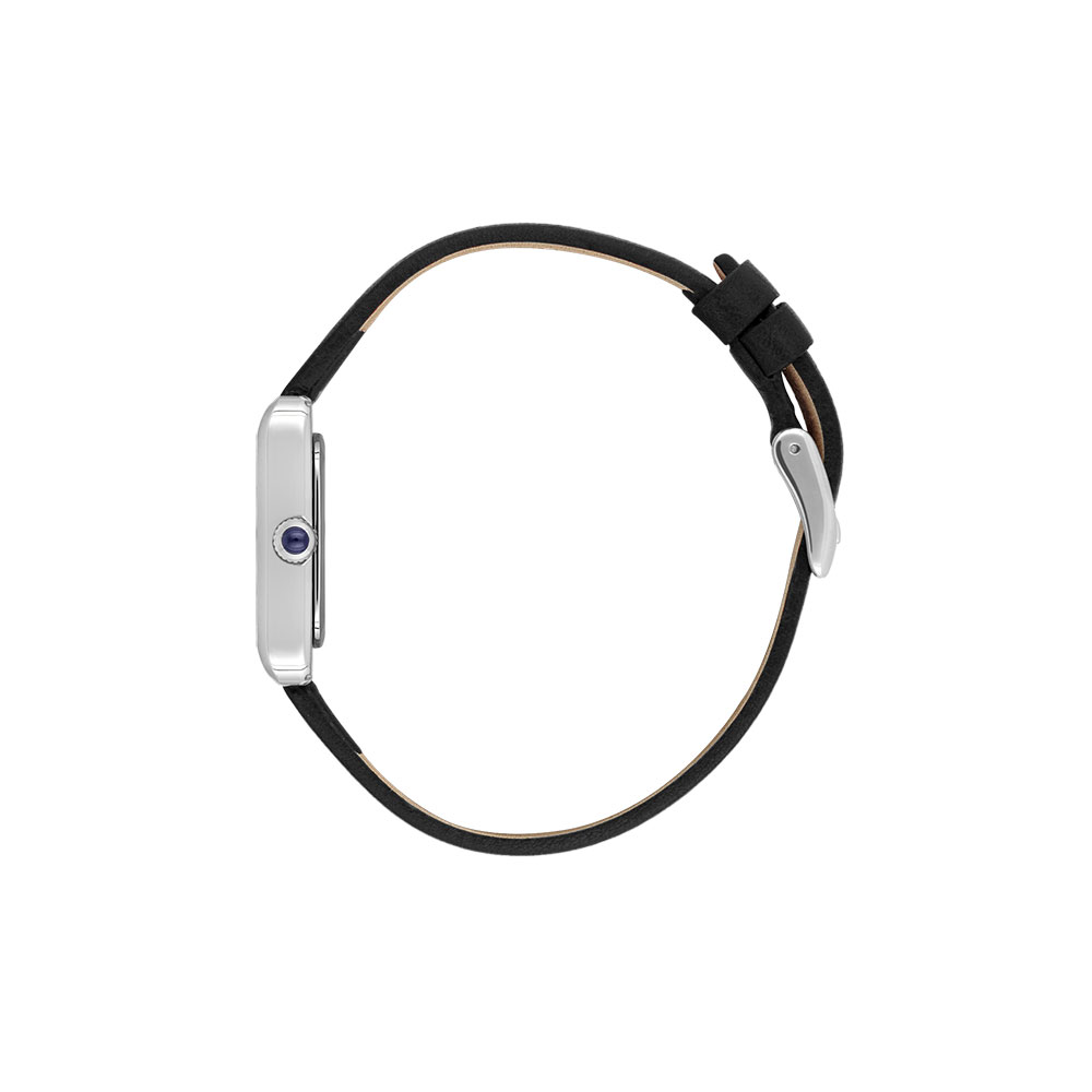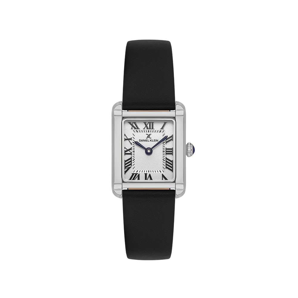 Carcasa patrata din aliaj metalic, cu o culoare argintie si finisaje de inalta calitate, incadreaza perfect cadranul alb argintiu, accentuat de cifre romane elegante. Curea de piele neagra asigura confort si durabilitate, in timp ce mecanismul quartz japonez garanteaza o precizie remarcabila, cu o abatere de doar ±20 secunde pe luna.
