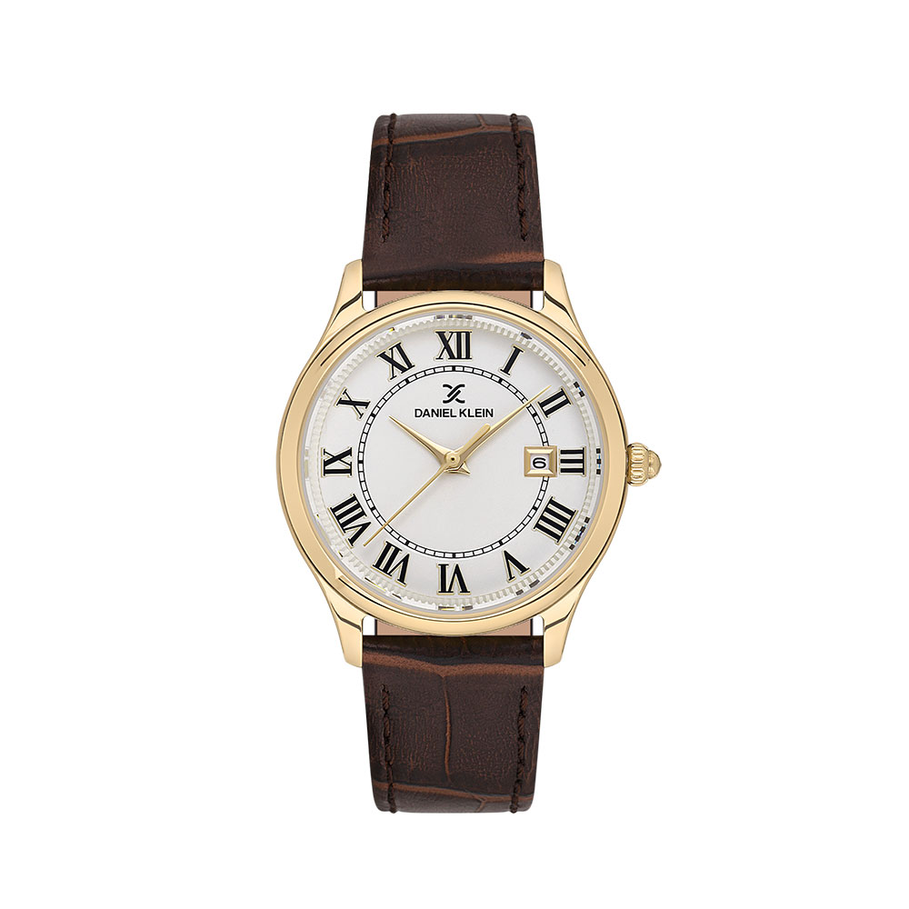 Avand un mecanism quartz japonez Epson Vx12e11 cu o abatere de doar ±20 secunde pe luna, acest ceas garanteaza precizie si durabilitate. Cadranul alb argintiu, protejat de un cristal mineral durabil, este accentuat de cifre romane care ofera un aer distins si usor de citit. Carcasa aurie de 32 mm si cureaua din piele cafeniu completeaza designul elegant si versatil, perfect pentru orice ocazie, de la intalniri de afaceri la evenimente sociale.