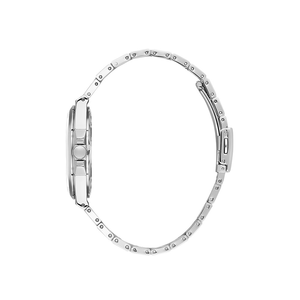 - Bratara din otel inoxidabil argintiu cu sistem de inchidere fluture pentru confort si siguranta.