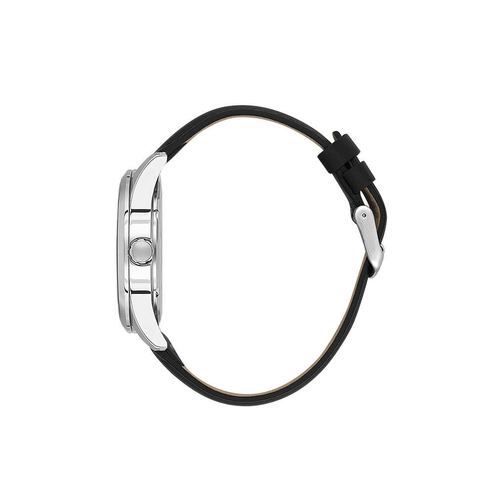 Carcasa rotunda din aliaj metalic argintiu si cadranul verde inchis cu afisaj analogic imbina clasicul cu modernul, iar geamul din cristal mineral asigura durabilitate si claritate. Functia de afisare a datei este discret integrata, adaugand un plus de utilitate. Curea de piele neagra este atat confortabila, cat si stilata, fiind perfecta pentru uz zilnic sau pentru ocazii speciale.